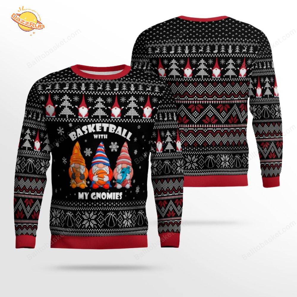 Funny Basketball With My Gnomies Christmas Ugly Sweater