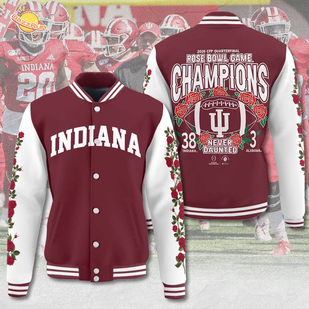 Celebrate a historic moment with the Indiana Hoosiers Football 2026 Rose Bowl Champions Jacket. This stylish baseball jacket showcases your pride and loyalty to the Hoosiers, featuring vibrant colors and iconic designs. Made for comfort and durability, it’s perfect for game days or casual wear. Don’t miss out on owning the Indiana Hoosiers Football 2026 Rose Bowl Champions Jacket!