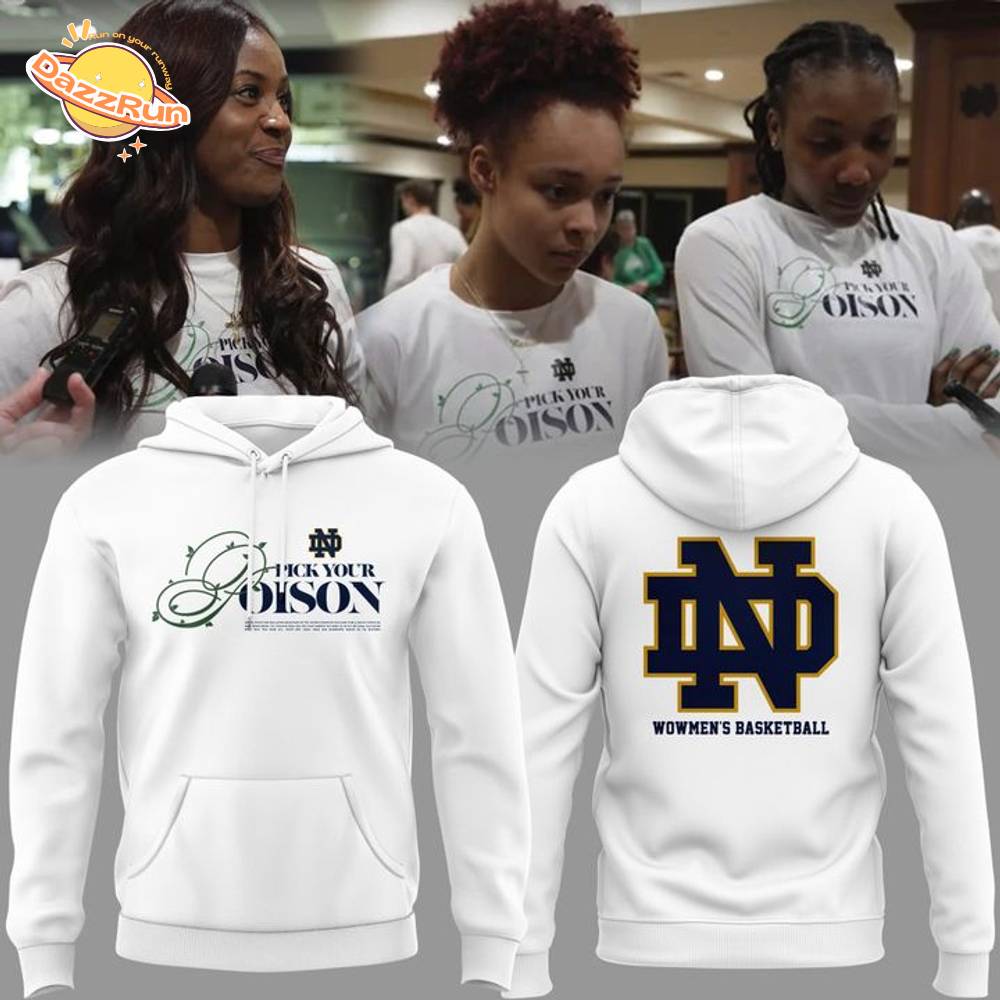 Notre Dame Women’s Basketball White Hoodie – Pick Your Poison Design