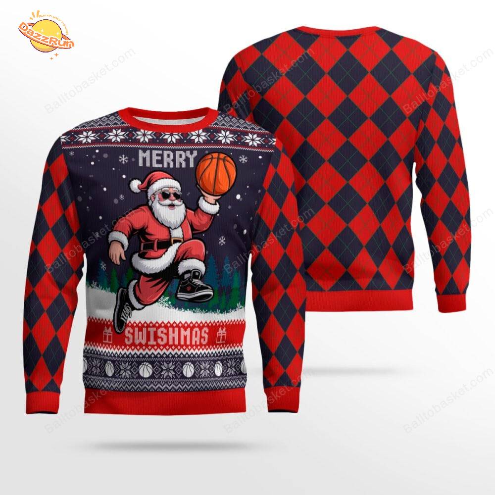 Santa Claus Merry Swishmas Basketball Ugly Sweater