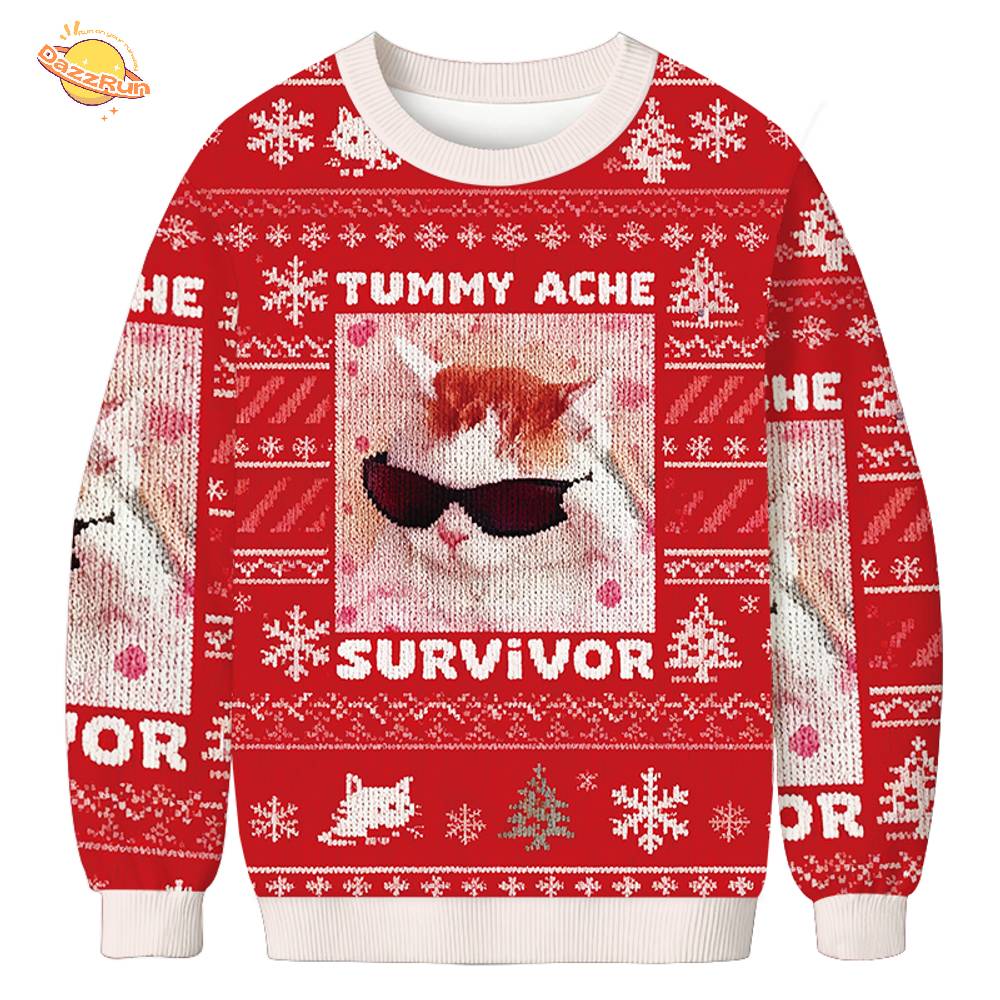Tummy Ache Survivor Funny Cat Meme Christmas Ugly Sweat
